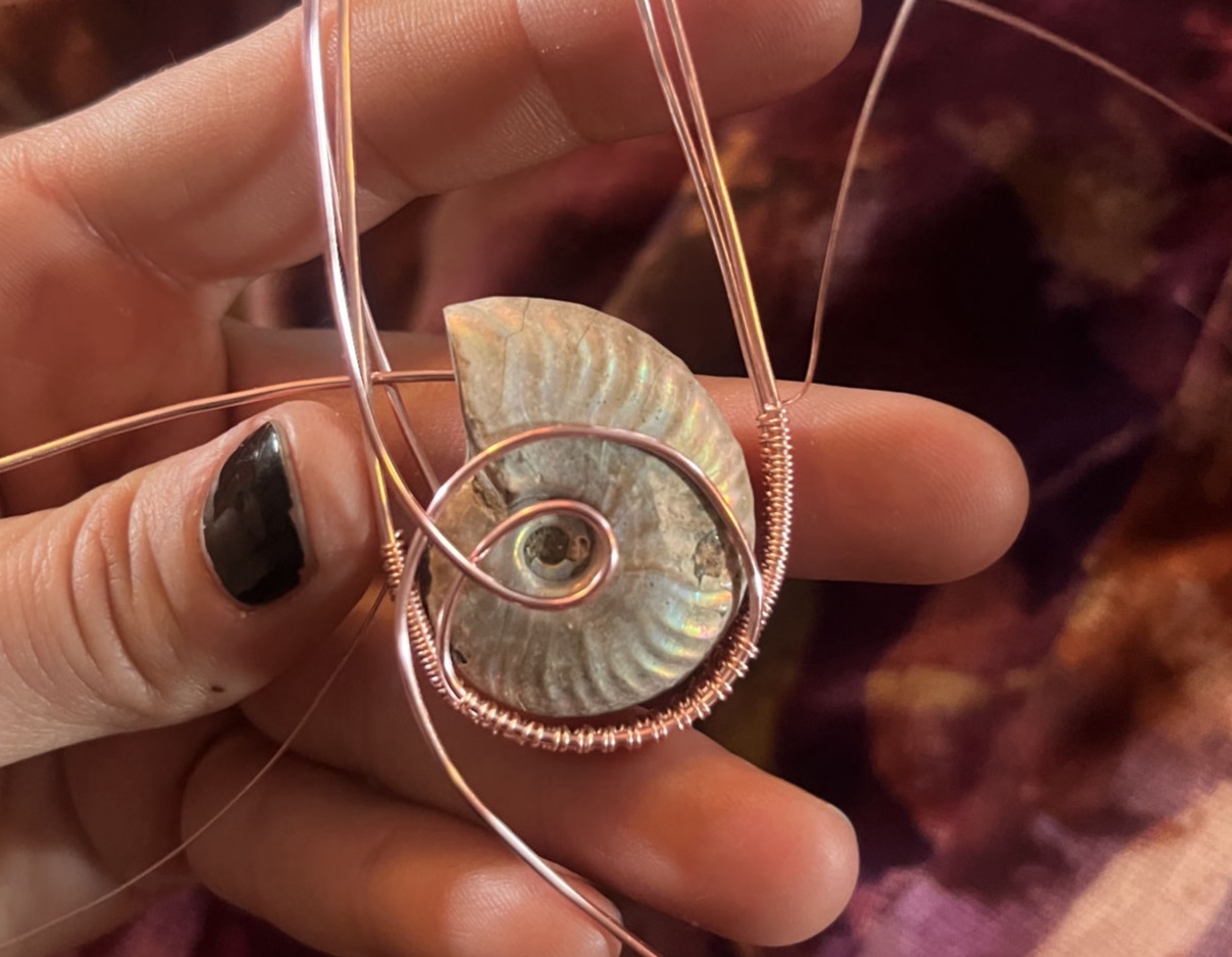 I developed a love of making jewelry in my childhood. My great-grandmother was an artist, jeweler, and collector of stones, shells, and any other interesting things she could pluck off the ground. She taught me basic skills in making jewelry, which I continued to foster after she passed.