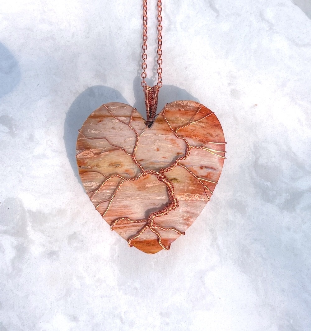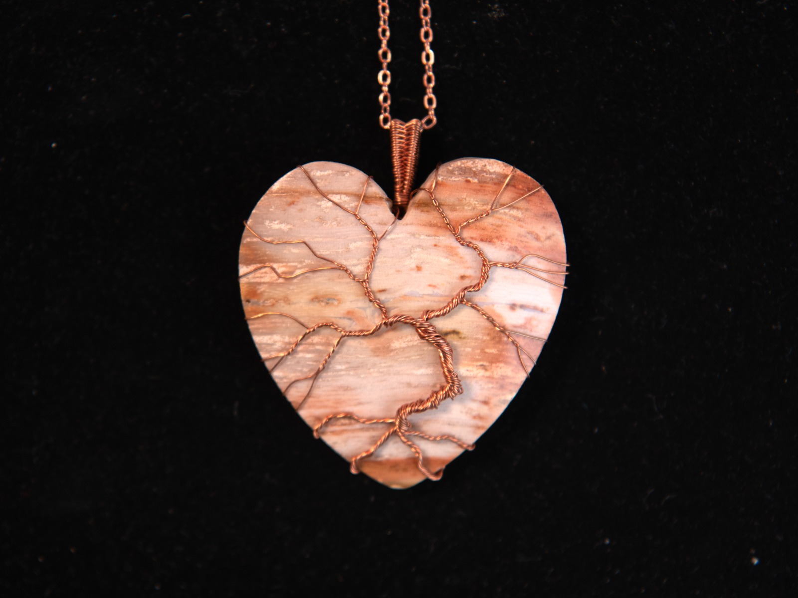 Materials: Heart Shaped Jasper Stone, Copper Wire, Copper Chain Included